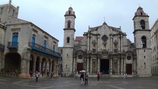 The Catedral de la Virgen María de la Concepción Inmaculada de La Habana, in Habana Vieja. UNESCO World Cultural Heritage Site. This is a panorama from the left to the right.