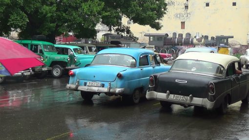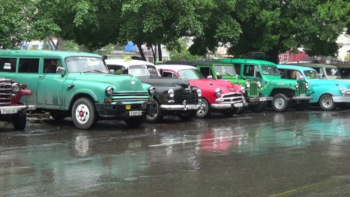 Taxi rank on Parque de la Fraternidad, the park south of the Capitolio. This is a collection of filmstills from the footage of video clip no. 02801.