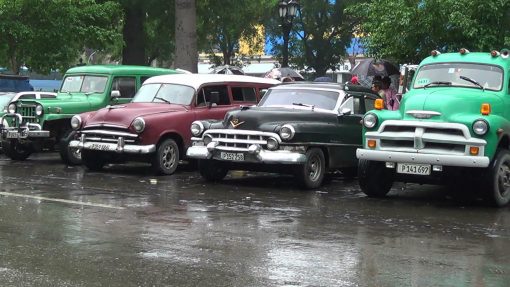 Taxi rank on Parque de la Fraternidad, the park south of the Capitolio. This is a collection of filmstills from the footage of video clip no. 02801.