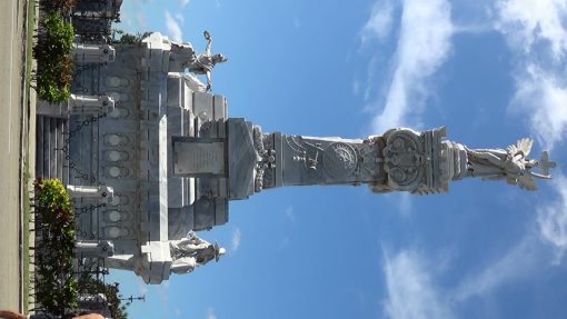 On Cementerio Cristobal Colon. This is the Mausoleo de los Bomberos, a monument dedicated to a group of firefighters who died in a fire in 1890. Cloud movement in real time speed.