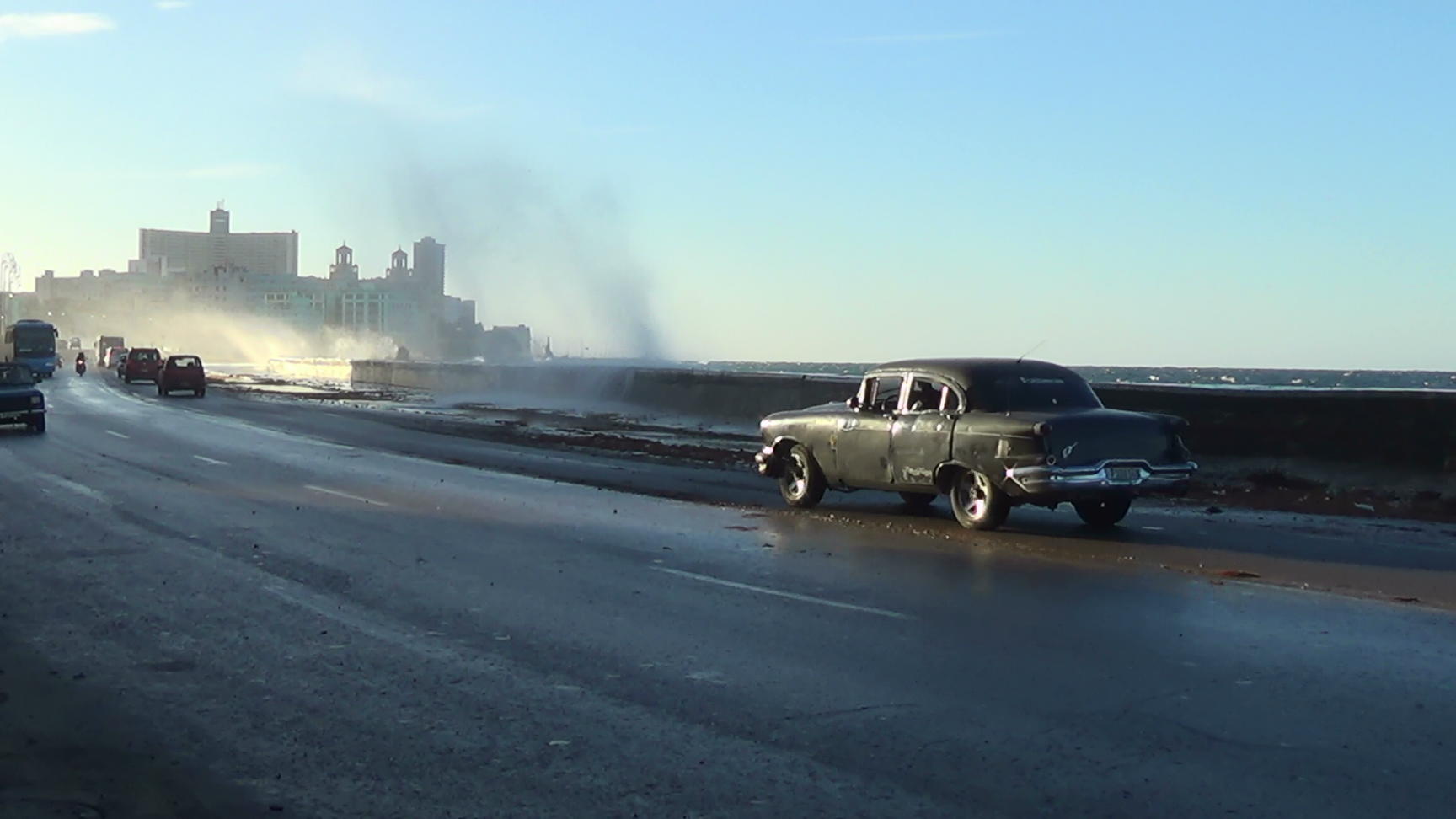 Evening on Malecon. This is in Centro, a view towards the Vedado skyline.