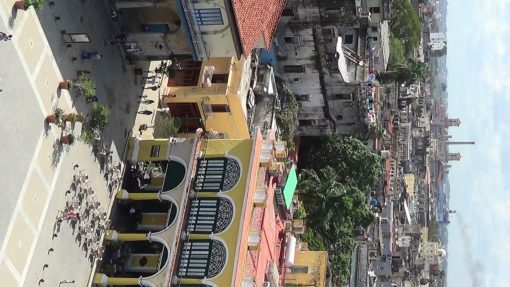 Everyday life on Plaza Vieja in La Habana Vieja. UNESCO World Cultural Heritage Site. This is La Taberna de la Muralla, the beer pub with their own micro brewery.