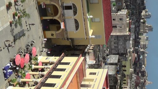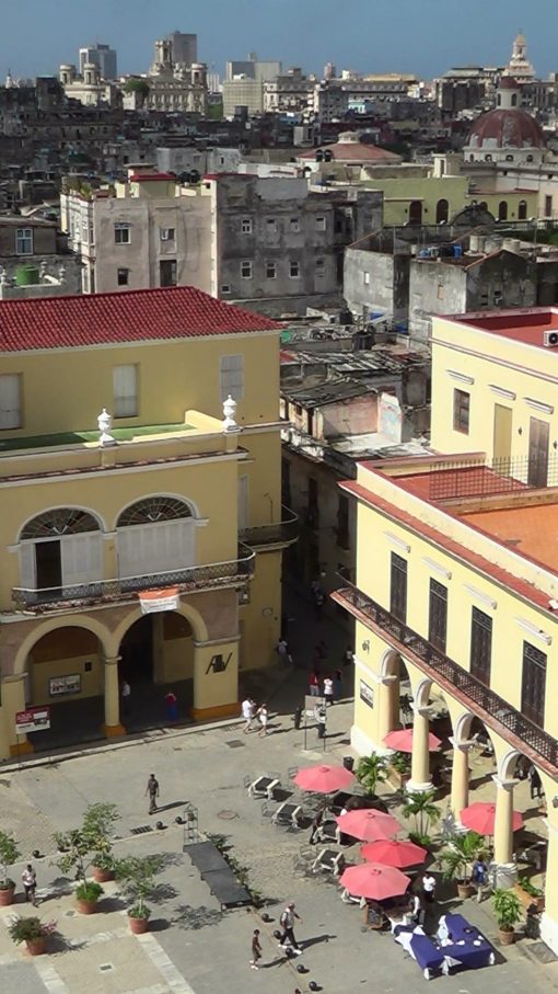 Everyday life on Plaza Vieja in La Habana Vieja. UNESCO World Cultural Heritage Site. This is a view from the Edificio Gomez Vila (the building with the “Camera Oscura” on the roof).