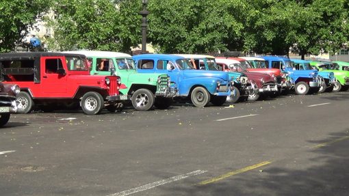 Taxi rank on Parque de la Fraternidad, the park south of the Capitolio.