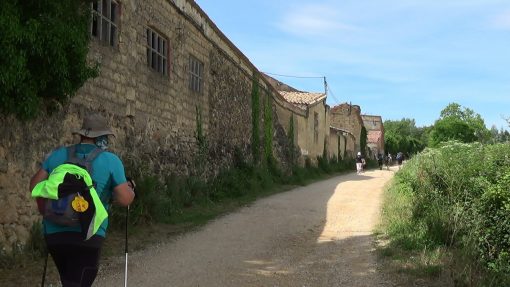 Camino de Santiago (St. James Trail). Bodegas Irache Winery, right after Estella, run a water and wine fountain on one of their outer walls. Having passed the wine fountain and the church Santa Maria la Real de Irache, pilgrims leave the monastery premises. The Camino de Santiago is UNESCO World Cultural Heritage.