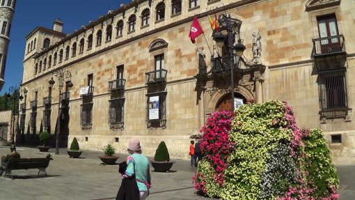Palacio de los Guzmanes on Plaza San Marcelo. Leon is a city on the Camino de Santiago (St. James Pilgrims Trail), which is UNESCO World Cultural Heritage Site.