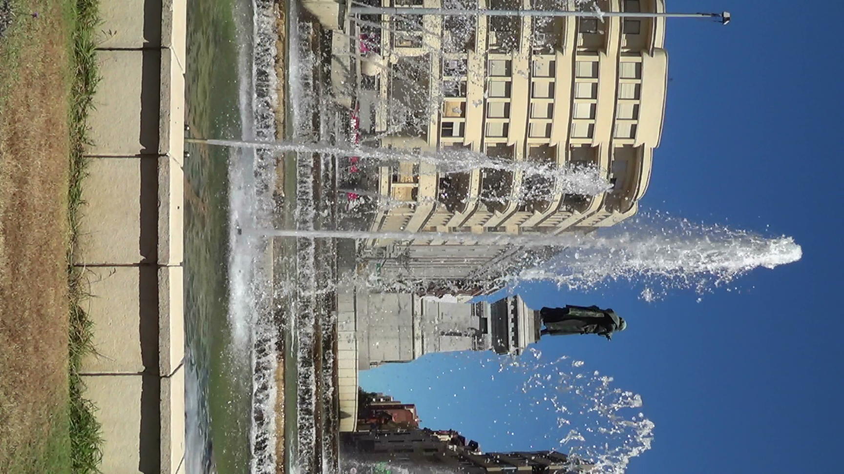 Fountain and statue in the center of Plaza de Guzman el Bueno.
