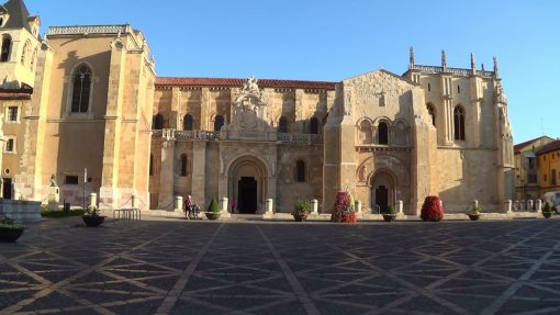 The Real Basilica San Isidoro on Plaza San Isidoro, together with the Royal Pantheon (the funeral chapel of the kings of Leon). This is a panorama from the right to the left.