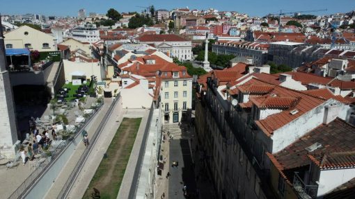 Pedestrians on Rua do Carmo in Chiado, seen from the platform of the Elevador de Santa Justa.