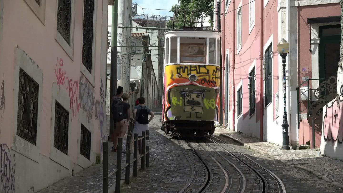 The Ascensor da Gloria (Elevador da Gloria) connects Avenida da Liberdade and the Jardim (Miradouro) de Sao Pedro de Alcantara.
