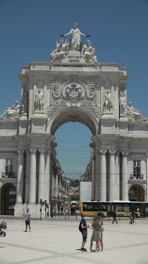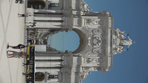 The Arco da Rua Augusta on Praca do Comercio. This is a panorama from the right to the left.