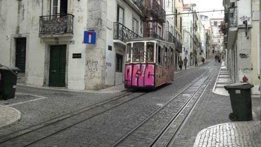 The Ascensor da Bica (Elevador da Bica) connects Rua de Sao Paulo and Largo do Calhariz in the Bairro Alto.