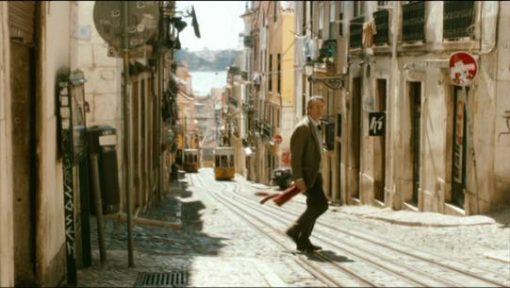 Raimund Gregorius (Jeremy Irons) strolls here in the cinema movie Night Train to Lisbon.