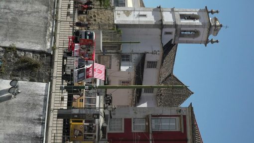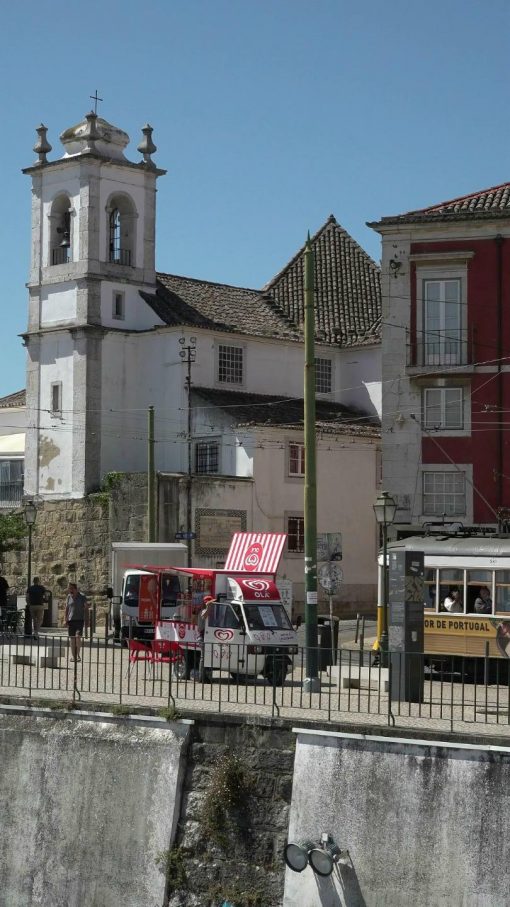 The old, rickety Carris tramway line number 28 on Largo Portas do Sol.