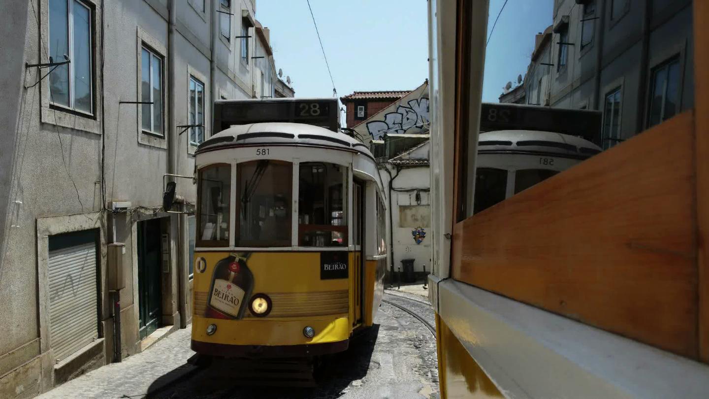 On the old, rickety Carris tramway line number 28 through Alfama.