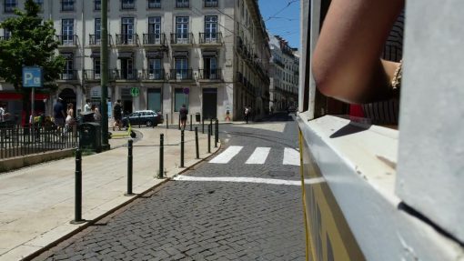 On the old, rickety Carris tramway line number 28 through Chiado.