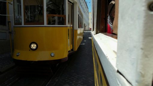 On the old, rickety Carris tramway line number 28 through Chiado.