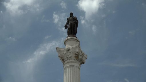 Sky and clouds over the column of Dom Pedro IV on Praca Dom Pedro IV / Rossio Square. The cloud speed is accelerated.