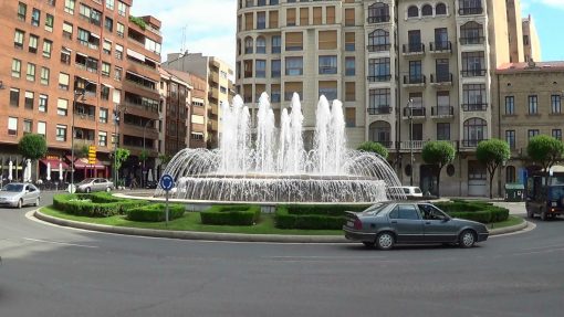 Plaza del Alferez Provisional, the fountain within the roundabout, at the western end of the pedestrian zone.