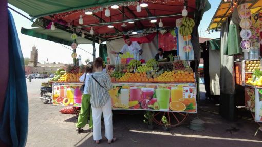 The central square Djemaa el Fna or Jemaa el Fnaa, seen from the tuktuk. UNESCO World Cultural Heritage Site.