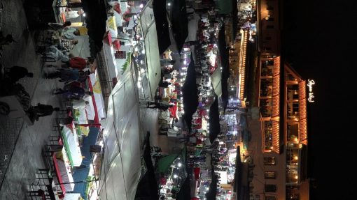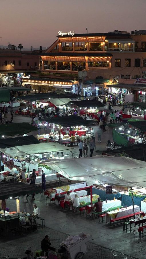 The central square Djemaa el Fna (Jemaa el Fnaa), seen from the Cafe Glacier. UNESCO World Cultural Heritage Site.