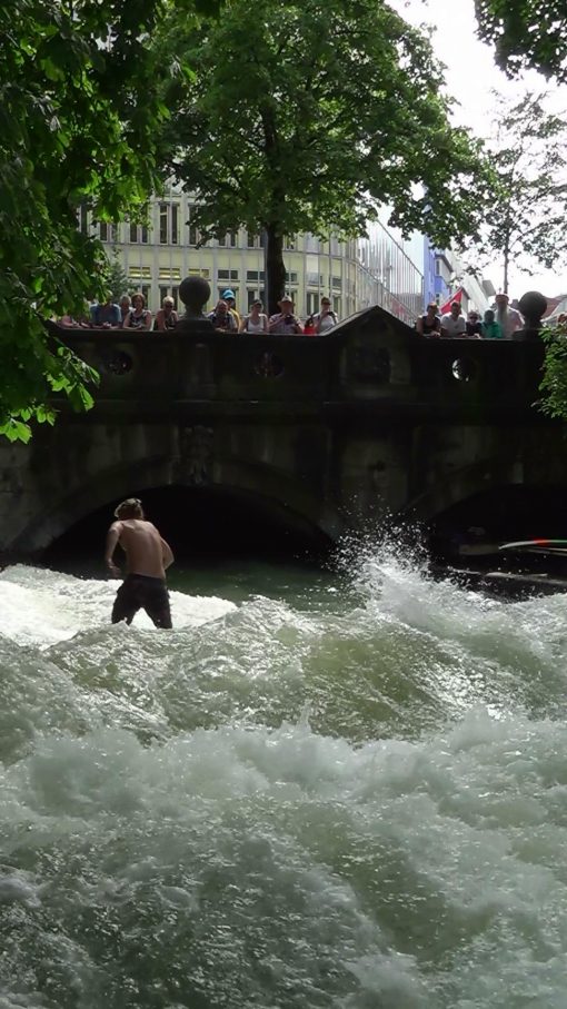 Surfers on the Eisbach (Ice brook) at Englischer Garten.