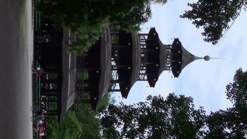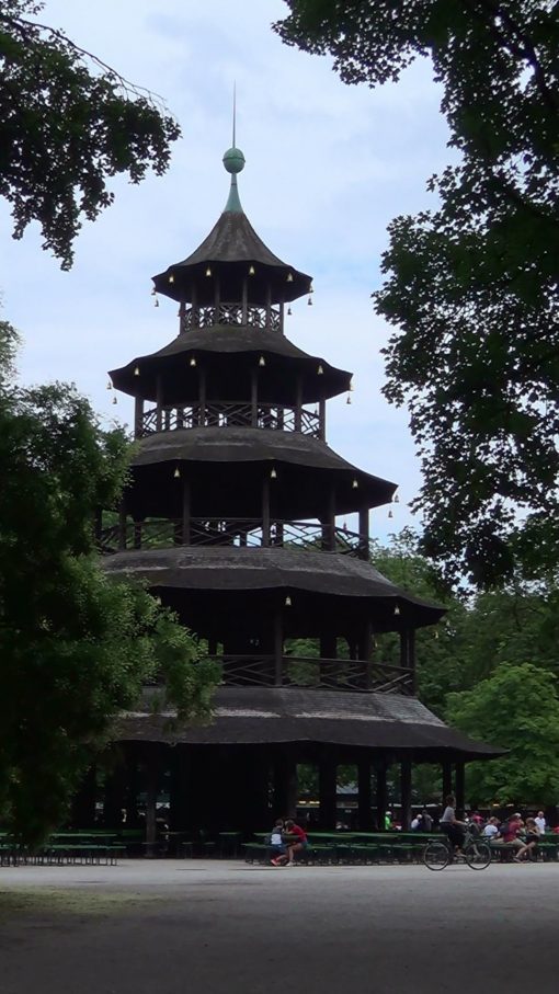 Chinesischer Turm (Chinese Tower) at Englischer Garten. This is a panorama from the left to the right.
