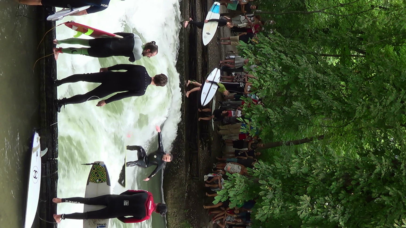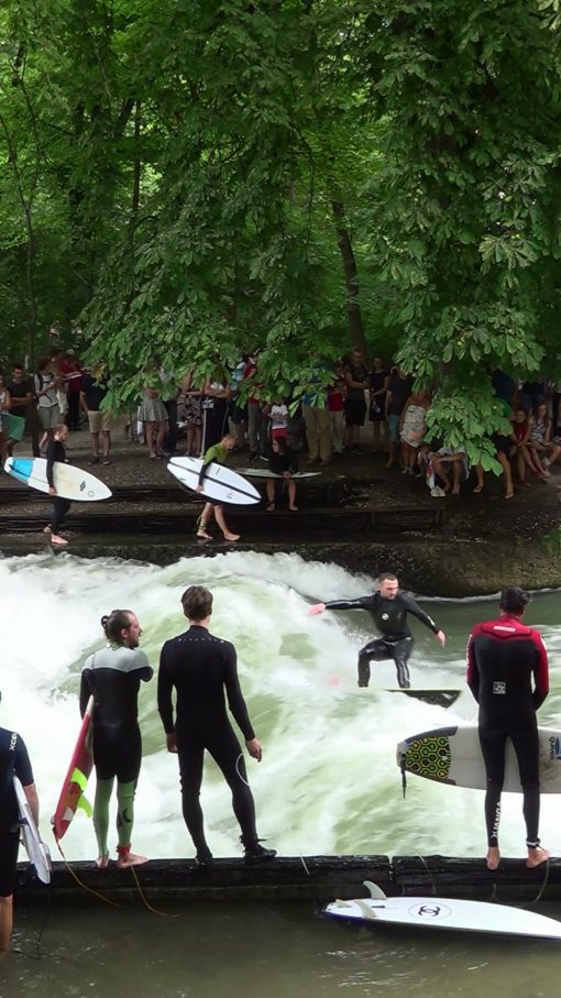 Surfers on the Eisbach (Ice brook) at Englischer Garten.