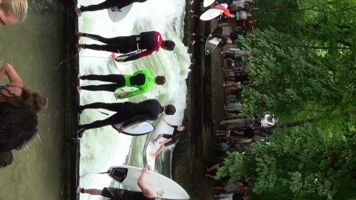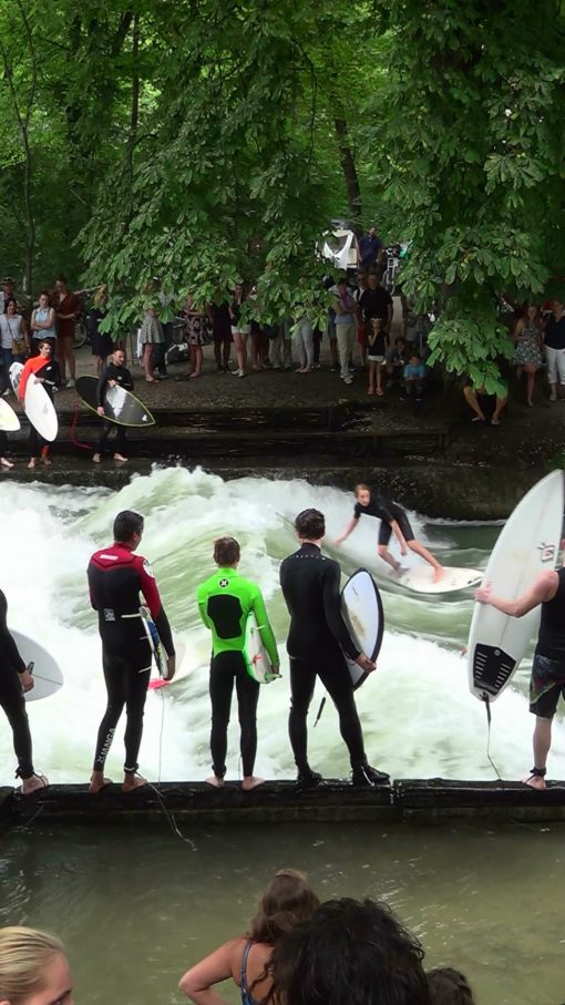 Surfers on the Eisbach (Ice brook) at Englischer Garten.