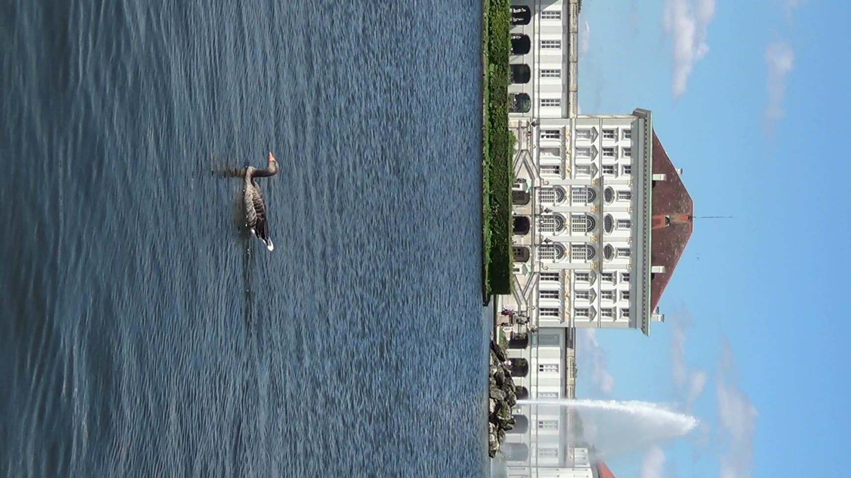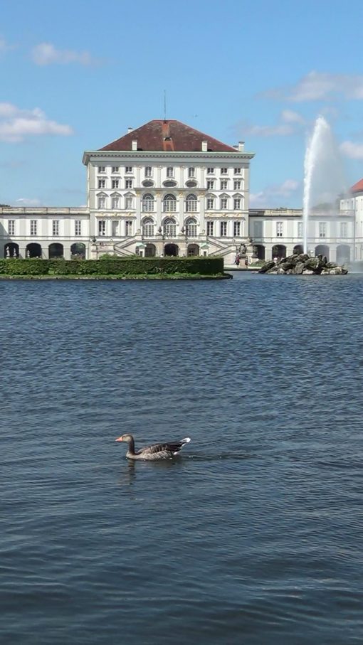Munich (München), Germany. Nymphenburg Palace, street front and pond.