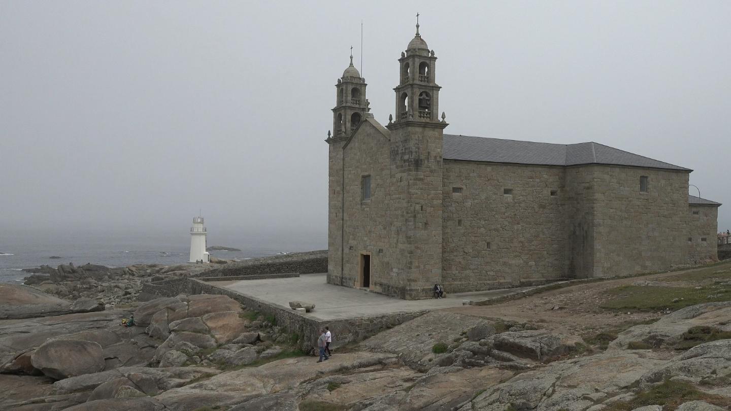 The remote Santuario da Virxe da Barca on the rocky coast of Muxia.