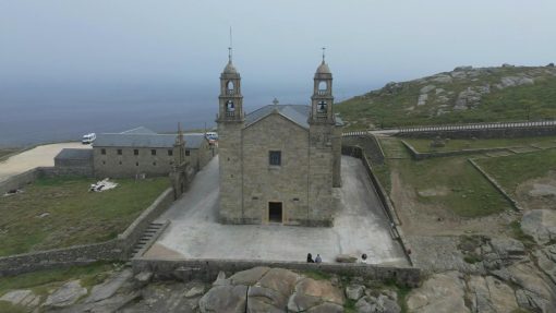 The remote Santuario da Virxe da Barca on the rocky coast of Muxia. This is an approach from the sea.