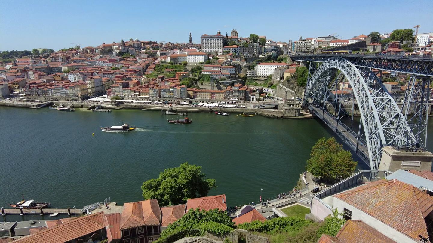 葡萄牙波尔图。从加亚新城看波尔图老城区。阳光明媚的夏日。联合国教科文组织世界文化遗产。