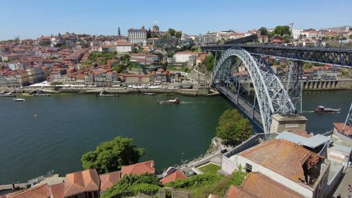 The old town of Porto and the bridge Dom Luis I, seen from Vila Nova de Gaia. UNESCO World Cultural Heritage Site.