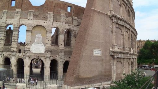 The Colosseo, seen from the street. UNESCO World Cultural Heritage Site. This is a panorama from the left to the right.
