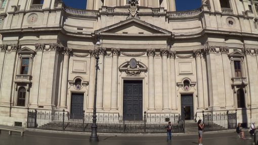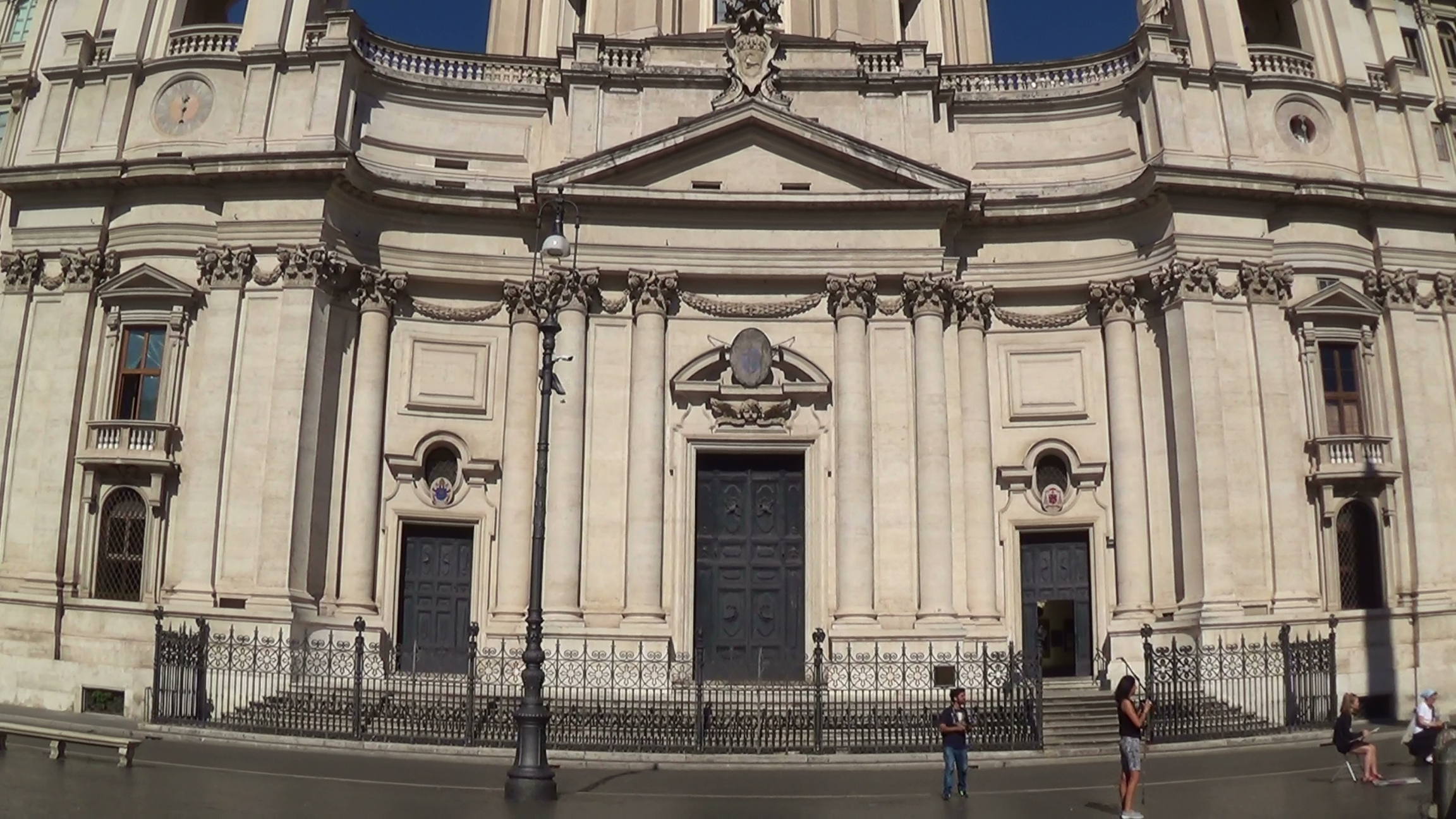 Chiesa di Sant’Agnese in Agone on Piazza Navona. The old town of Rome is UNESCO World Cultural Heritage Site. This is a tilt down.