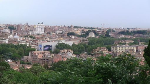 View to Rome from the Gianicolo. The Vittoriano (Altare della Patria, Monumento a Vittorio Emanuele II) in the distance. This is a zoom out.