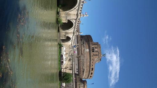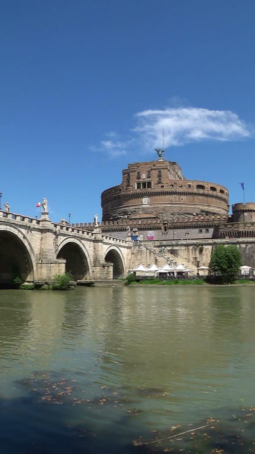 Ponte Sant’Angelo (Bridge of the Holy Angel) and Castel Sant’Angelo (Castle of the Holy Angel). UNESCO World Cultural Heritage Site. This is a zoom out.
