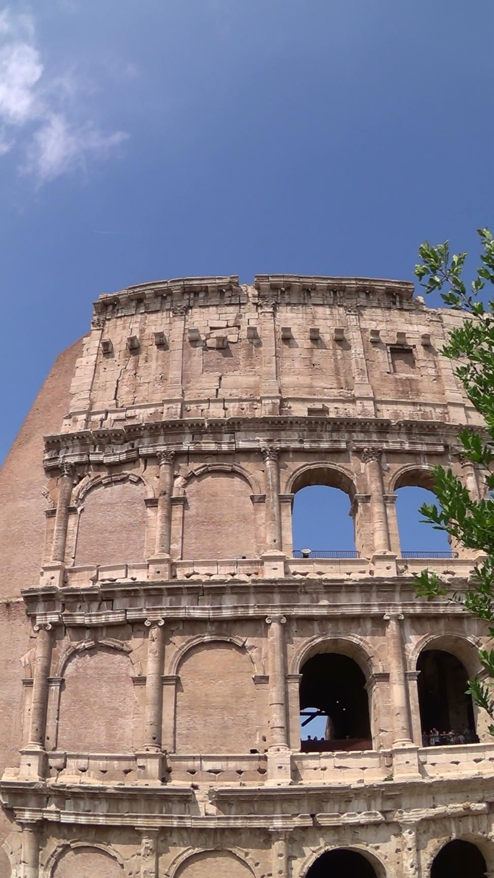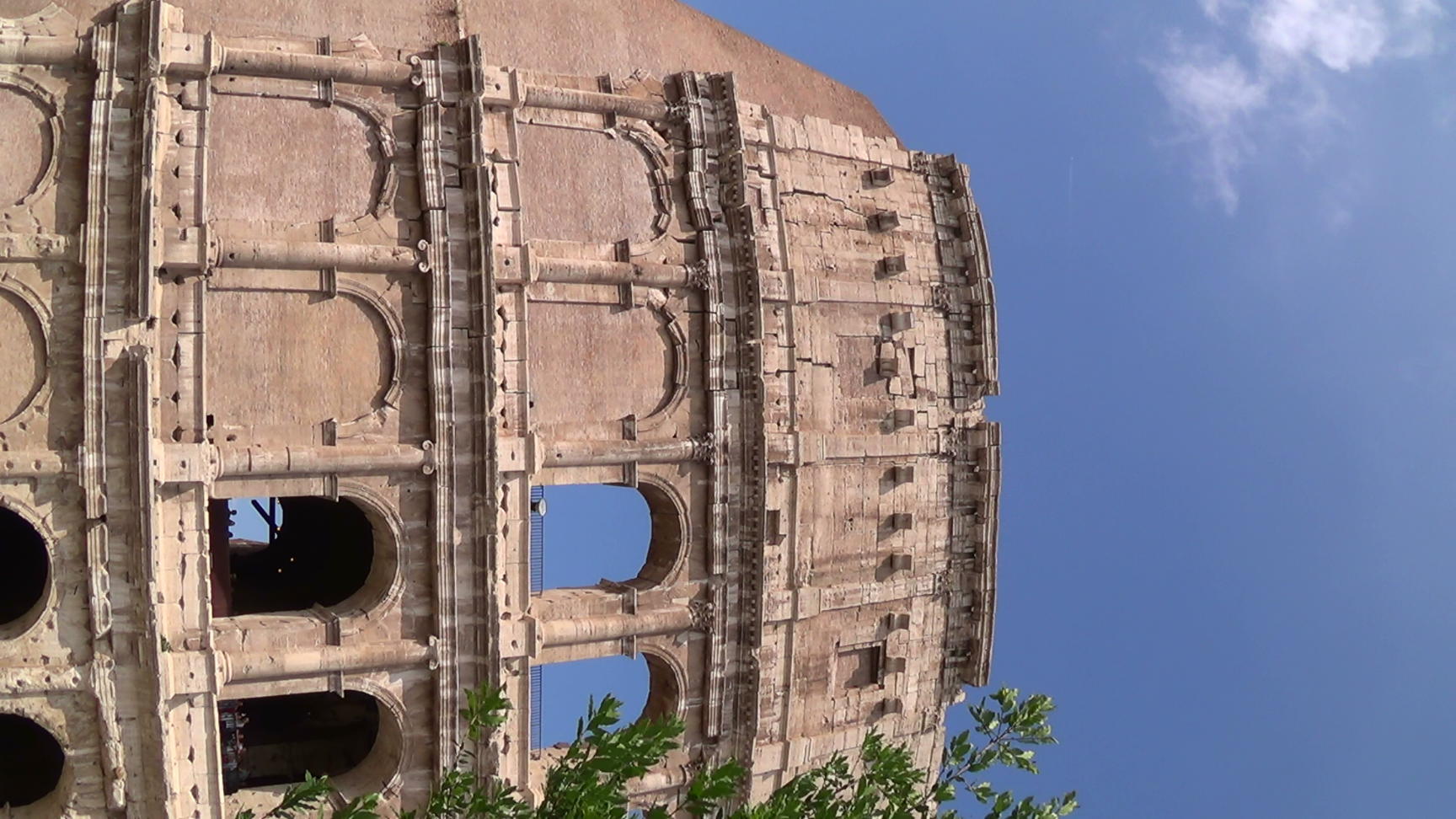 The Colosseo, street front. UNESCO World Cultural Heritage Site. The cloud speed is accelerated.