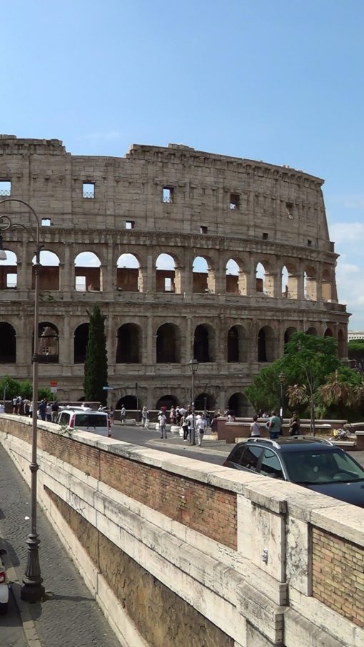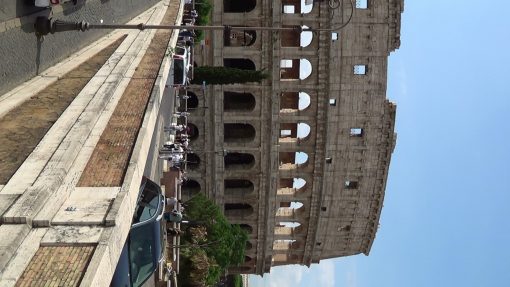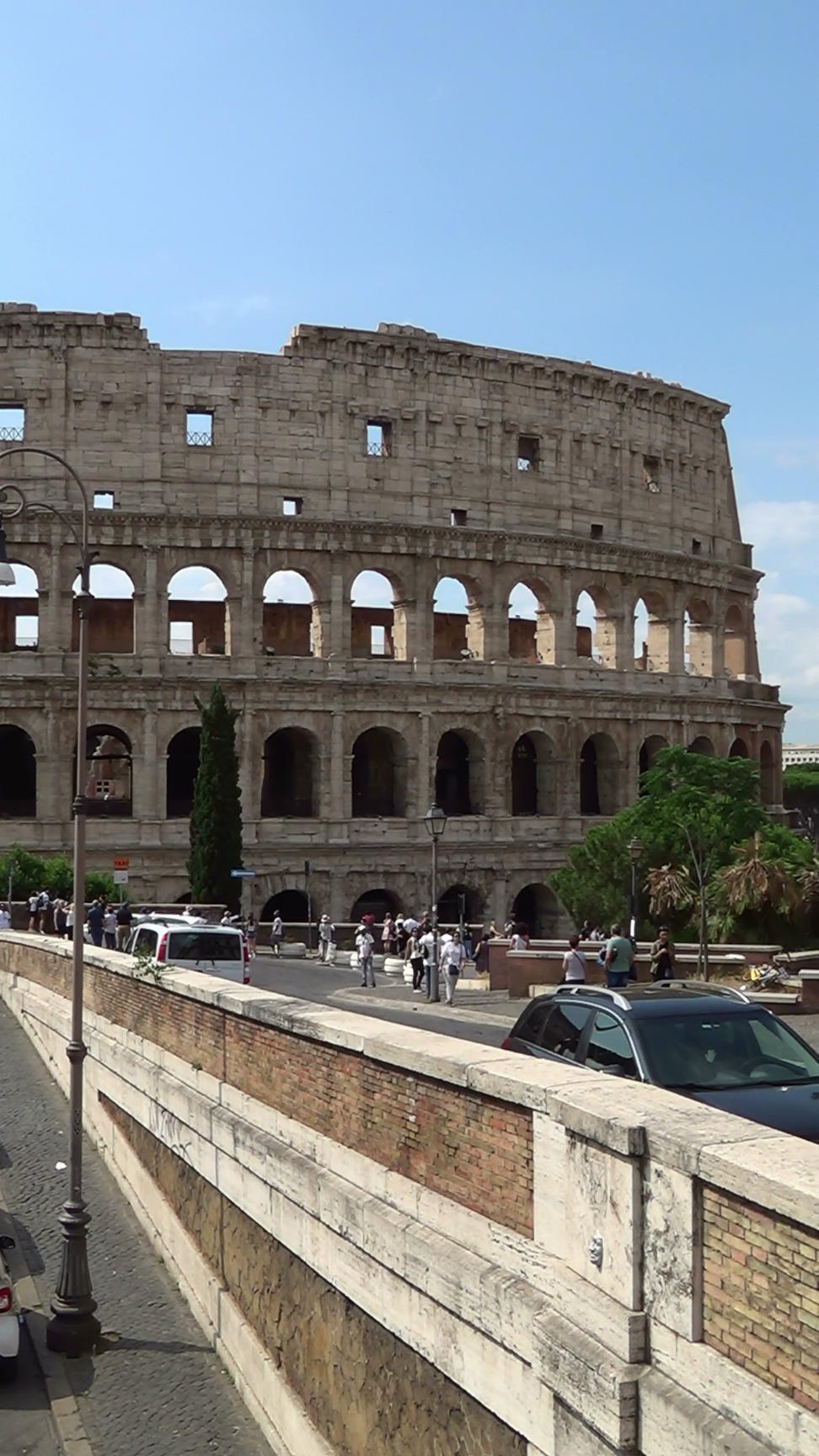 The Colosseo, street front. UNESCO World Cultural Heritage Site. This is a panorama from the left to the right.