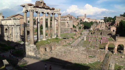 Tom Ripley (Matt Damon) visits the ruins of the forum in the cinema movie “The Talented Mr. Ripley”.