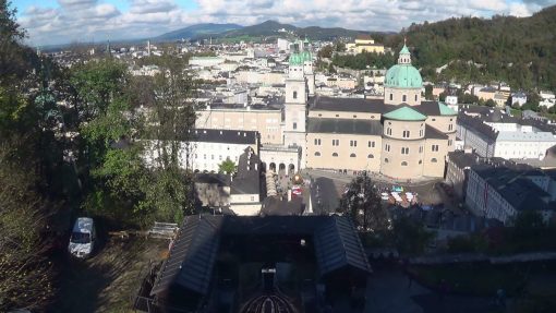 A view from the ascending Festungsbahn, the funicular that connects the Old Town and the fortress Hohensalzburg.
