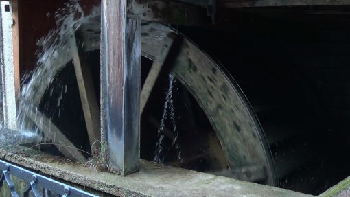 A traditional water mill in the City of Salzburg. Overshot wheel. The wheel in this video was replaced by a stronger one in 2018.
