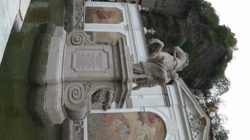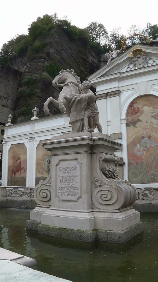 The historic horsepond “Pferdeschwemme” in the Old Town. On the pedestal “The horse tamer”.