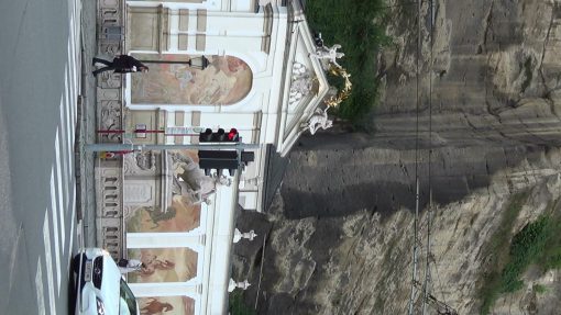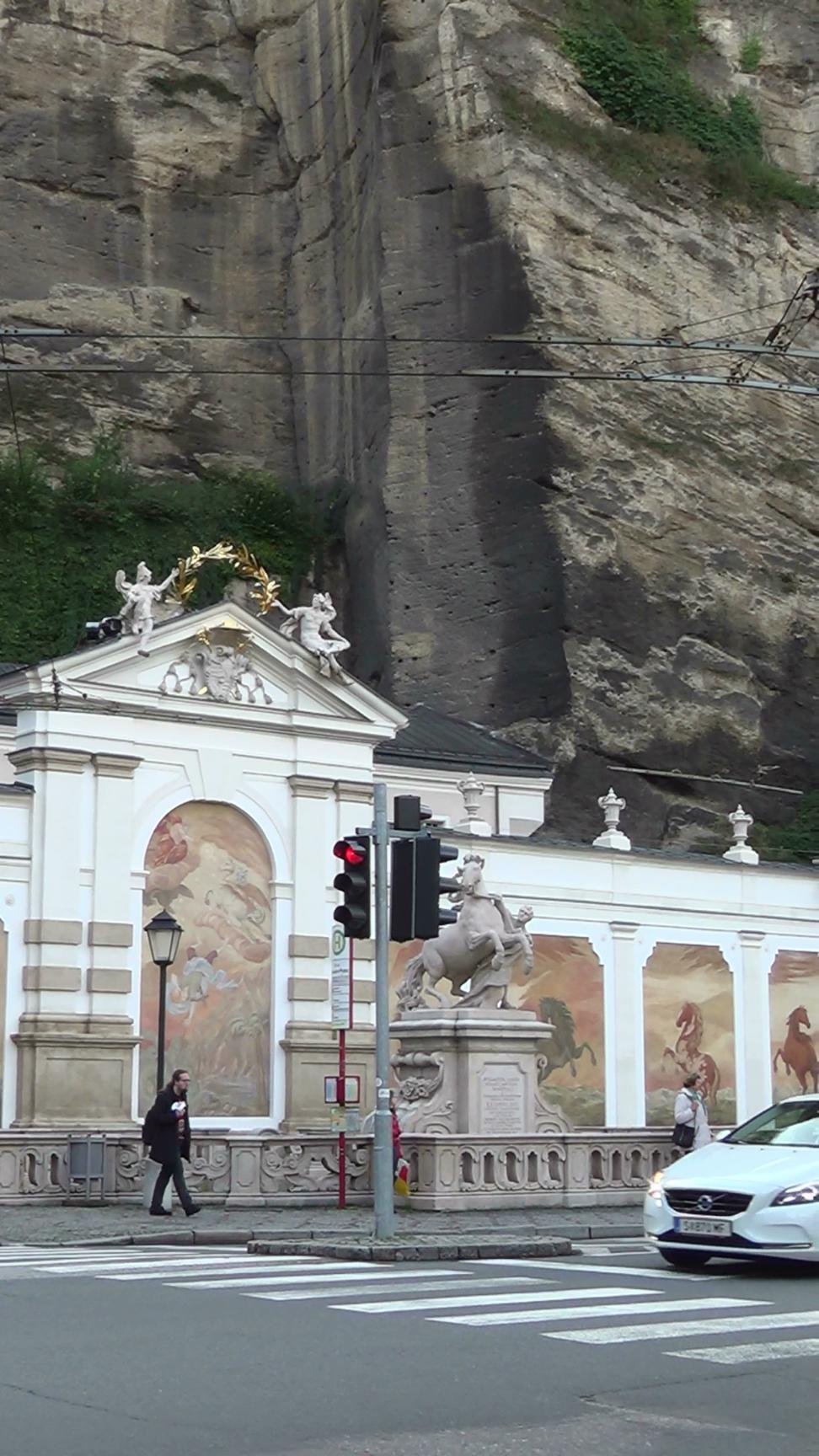 The historic horsepond “Pferdeschwemme” in the Old Town. UNESCO World Cultural Heritage Site. This is a panorama from the left to the right.