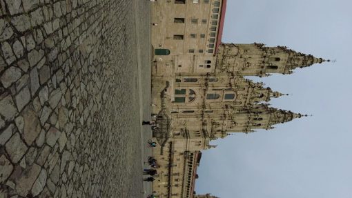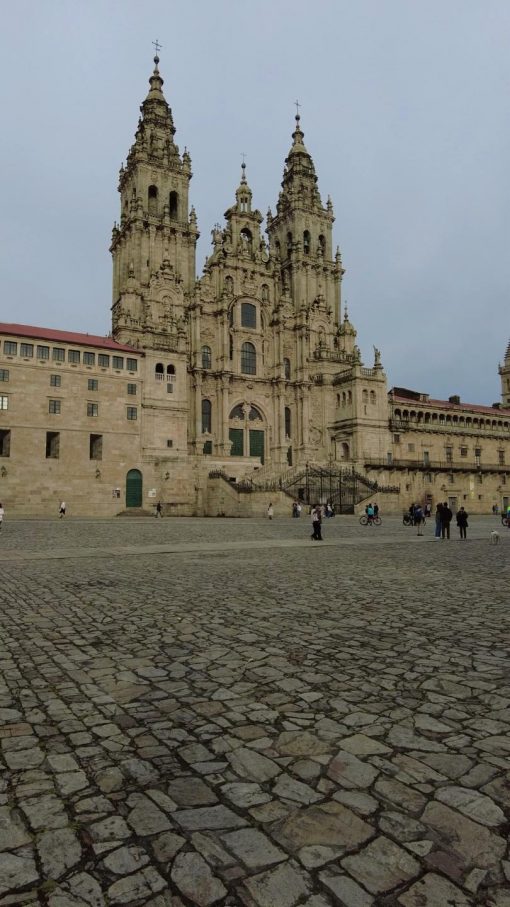 The cathedral and the central square Praza do Obradoiro. Pilgrims gather here after arrival. The Camino de Santiago is UNESCO World Cultural Heritage.
