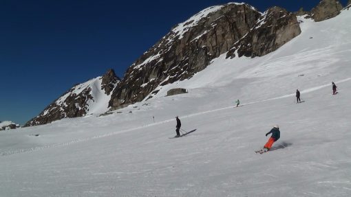 Skiing in the mountains of Salzburger Land. This is a panorama from the right to the left.