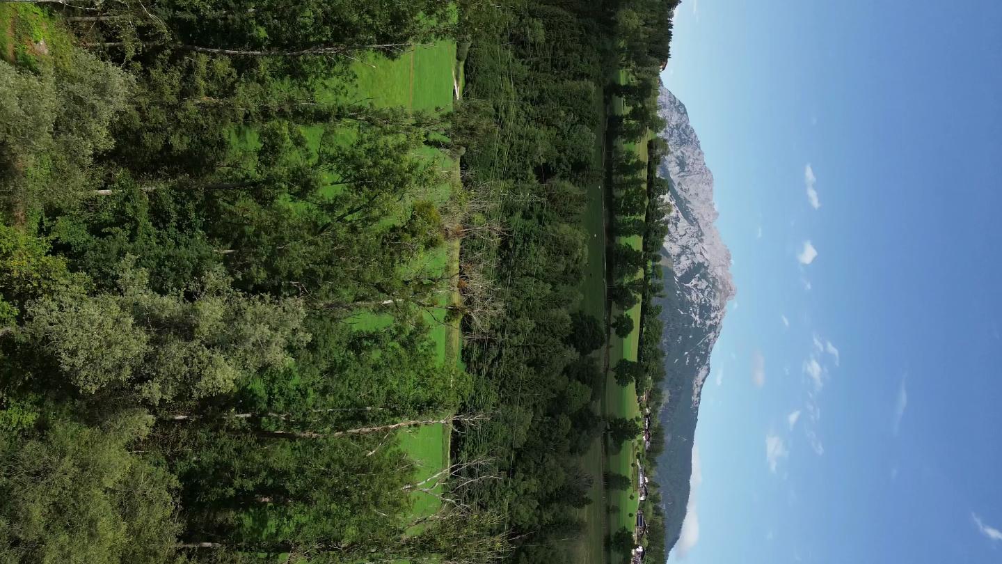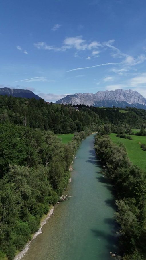 The Enns river in the Enns valley in the Austrian Alps. This is a panorama from the right to the left.