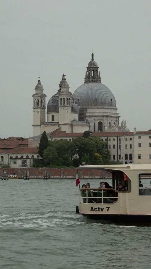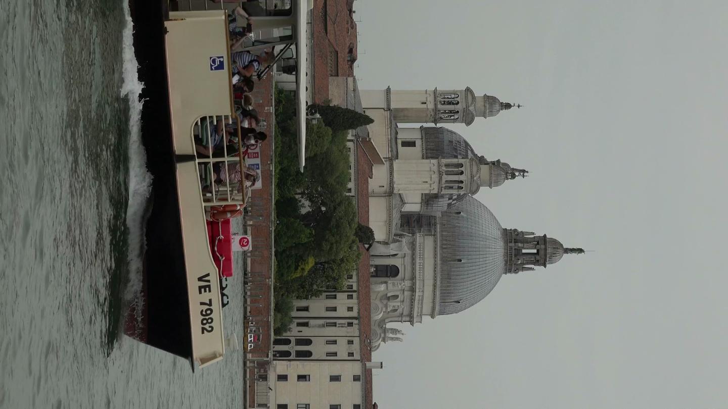 Traffic on the Giudecca Canal. Santa Maria della Salute in the distance. Venice is UNESCO World Cultural Heritage Site.