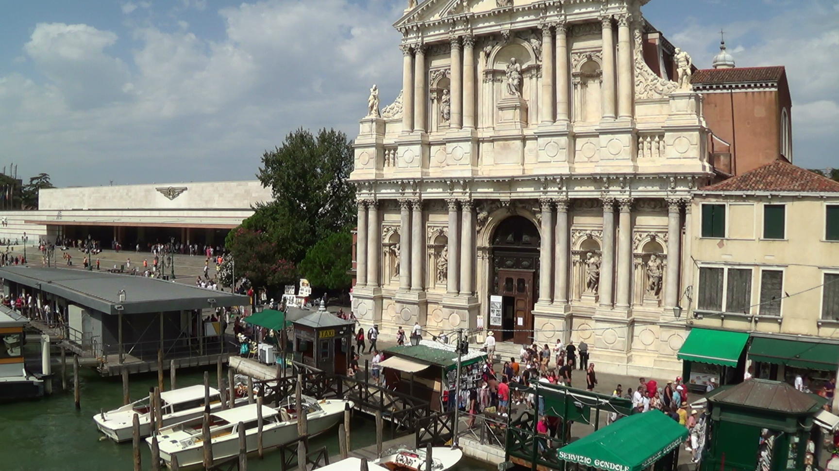 Elise Ward and Frank Tupelo (Angelina Jolie, Johnny Depp) arrive at the Santa Lucia Railway Station nearby in the cinema movie The Tourist.